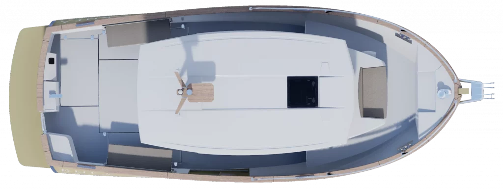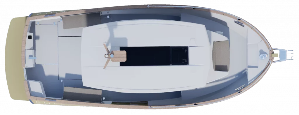 Création d’un nouveau pack navigation qui intègre les feux de navigation, l’anneau de treuillage sur l’étrave, 2 chaumards avant et 2 écubiers arrière, 2 taquets de garde, le compas de route, le siège copilote, le GPS AXIOM 9’’, sonde traversante, main courante inox arrière timonerie, avertisseur de brume électrique, 1 réservoir gasoil 300 litres (à la place du 150), 21 essuie glace supplémentaire, 1 prise USB-C et USB-A à la console.