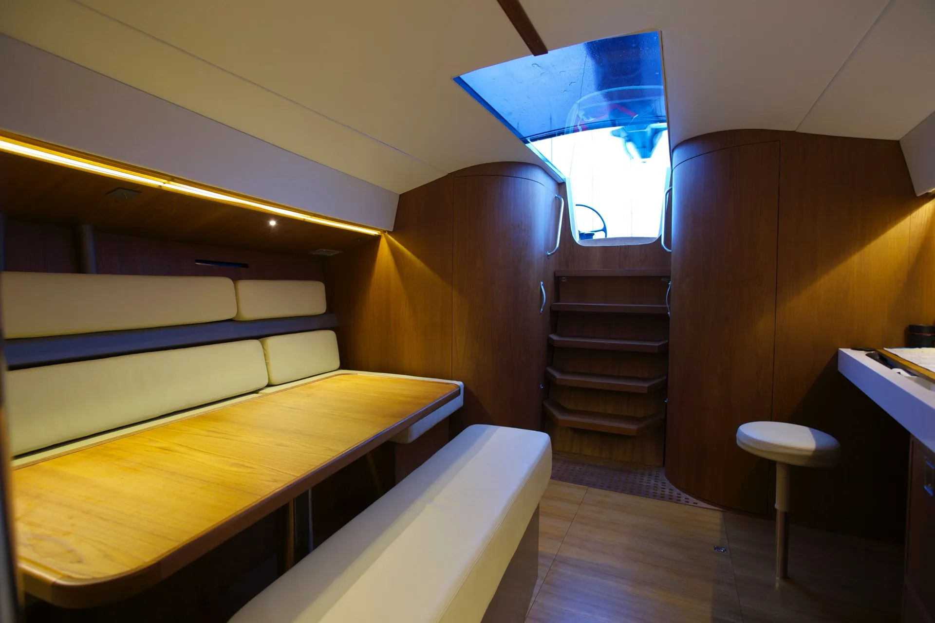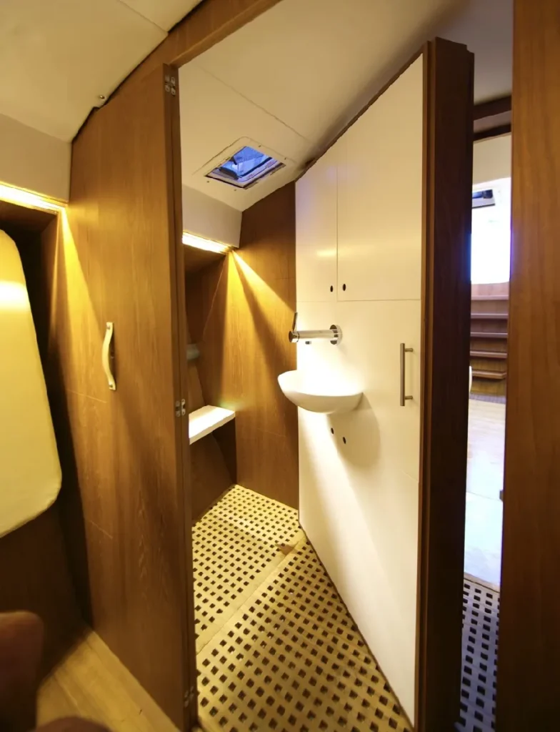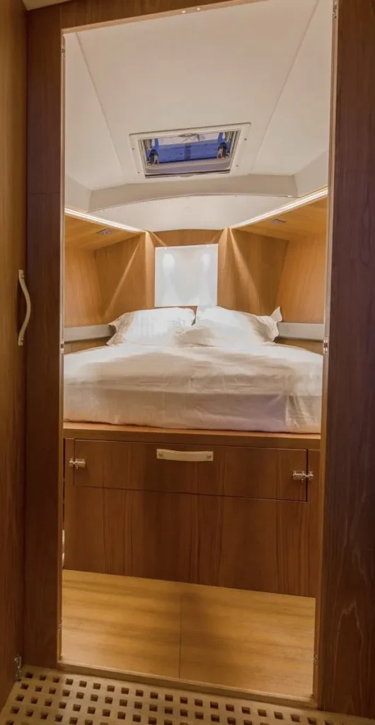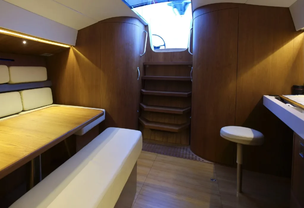 Celle d’un voilier qui marie l’élégance Tofinou à l’allure d’une grande unité. Sa ligne élancée, et son impressionnant gréement lui donnent une véritable présence sur l’eau, qui ne laisse pas indifférent. Sa carène tendue se régale de longues distances, tandis que son pont flush invite autant à la manœuvre qu’au plaisir de vivre dehors. À l’intérieur, larges espaces de vie, boiseries raffinées, rangements généreux et agencement conçu pour la croisière au long cours. Fidèle à la simplicité de manœuvre propre à Tofinou, il assume sans réserve un programme de navigation plus ambitieux. Un voilier d’exception, conçu pour ceux qui ont la passion des belles choses : ils retrouveront l’incomparable esthétique Tofinou dans un voilier d’exception, capable d’aller plus loin, au gré de leurs envies.
