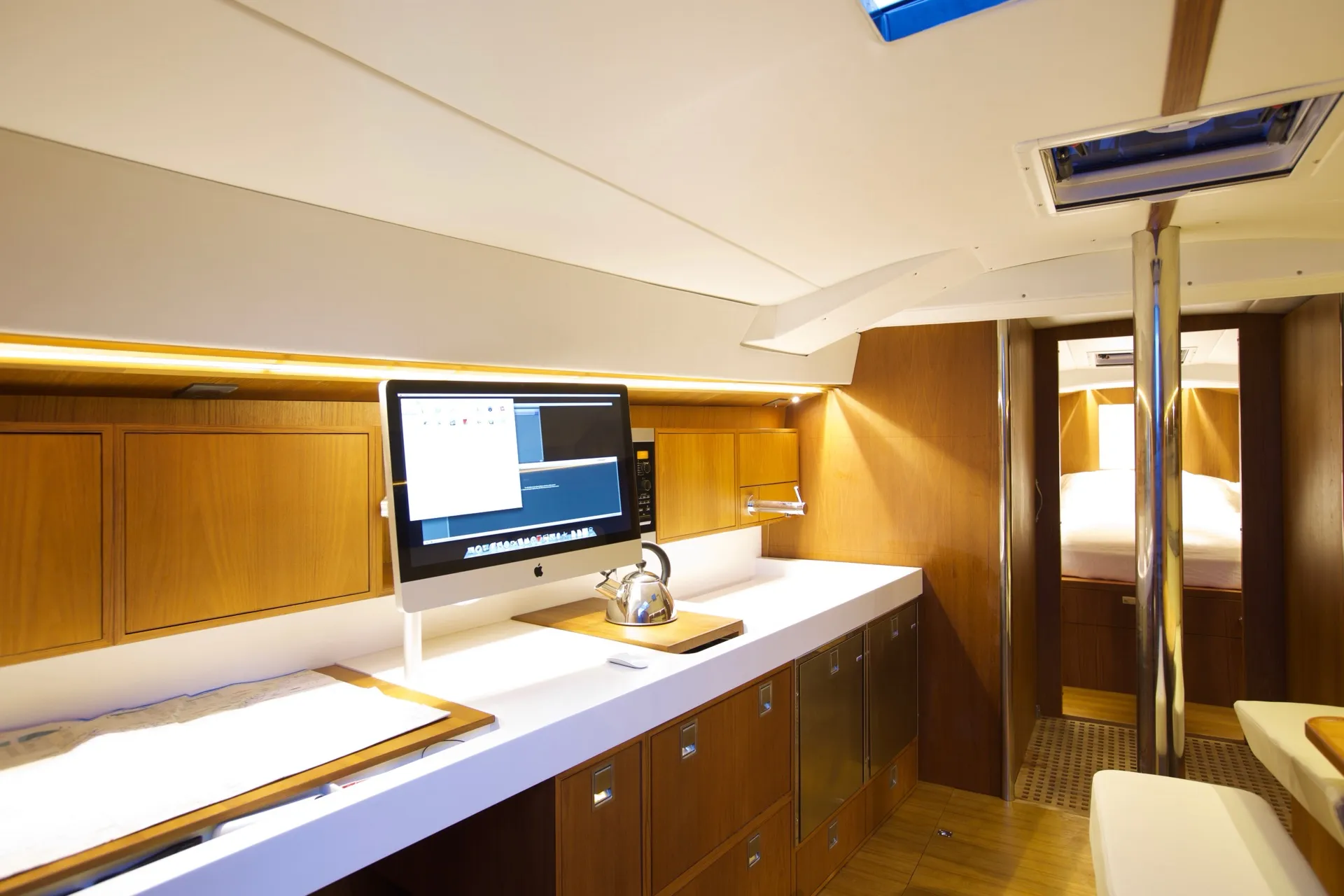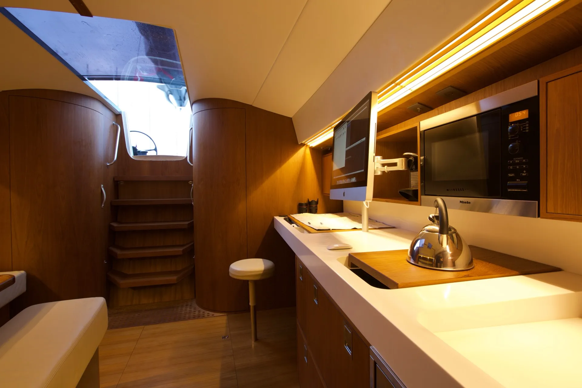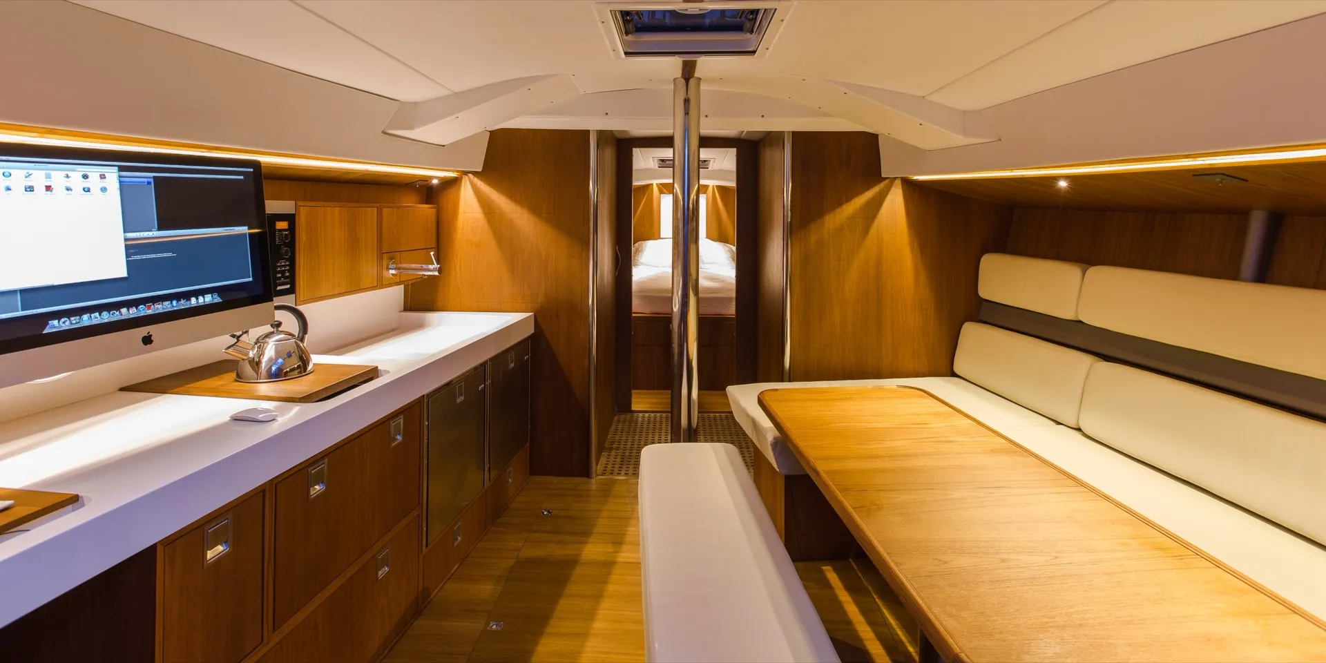 Celle d’un voilier qui marie l’élégance Tofinou à l’allure d’une grande unité. Sa ligne élancée, et son impressionnant gréement lui donnent une véritable présence sur l’eau, qui ne laisse pas indifférent. Sa carène tendue se régale de longues distances, tandis que son pont flush invite autant à la manœuvre qu’au plaisir de vivre dehors. À l’intérieur, larges espaces de vie, boiseries raffinées, rangements généreux et agencement conçu pour la croisière au long cours. Fidèle à la simplicité de manœuvre propre à Tofinou, il assume sans réserve un programme de navigation plus ambitieux. Un voilier d’exception, conçu pour ceux qui ont la passion des belles choses : ils retrouveront l’incomparable esthétique Tofinou dans un voilier d’exception, capable d’aller plus loin, au gré de leurs envies.